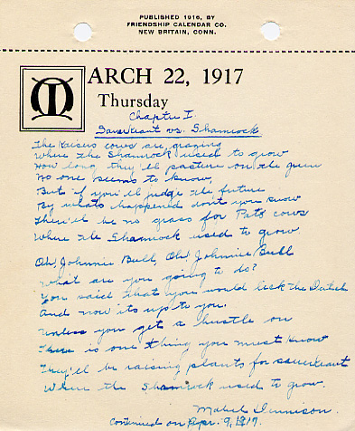 Sauerkraut vs. Shamrock Where the Shamrock used to grow How long they'll pasture on the green No one seems to know, But if you'll judge the future By whats happened don't you know There'll be no grass for Pat's cows Where the Shamrock used to grow.
