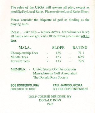 - back Rules of the course; course designed by Donald Ross in 1922.