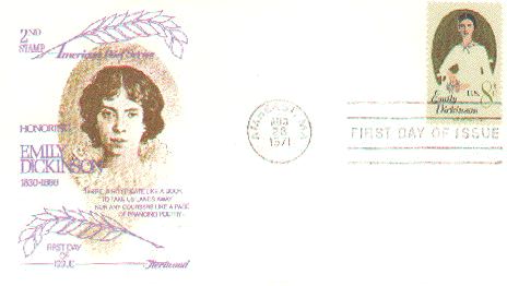 - front "First day of issue" "Emily Dickinson 1830-1886 American Poet"