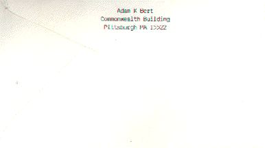 - back Return address for Adam K. Bert, Commonwealth Building, Pittsburgh, PA 15522