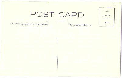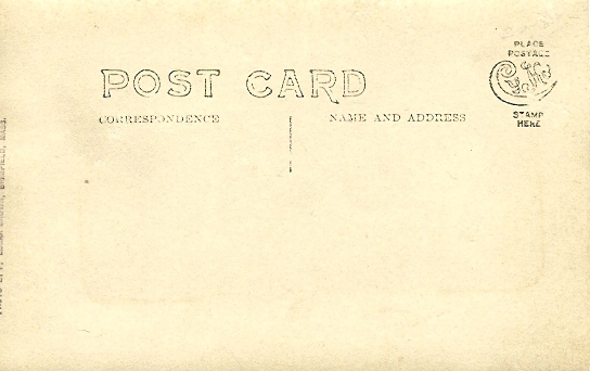 - back Divided back, stamp box, unused. Published by Fairbanks Card Company, 14 High Street, Brookline, Mass.