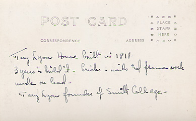 - front "Mary Lyon House Buckland, Mass" Love that backward "N" in "Buckland"!