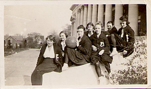 - front Peabody basketball team. Inscription on back: "Nell Crane holding Ball 1920-1921 Championship Team Peabody College"