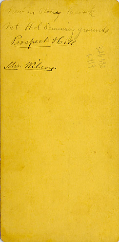 - back Inscription: "View on Stoney Brook Mt Hol Seminary grounds Prospect Hill / Mrs. Wilcox."