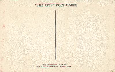 - back Divided back, unused. Published by The City Post Cards, from photographs made by The Maynard Workshop, Waban, Mass.