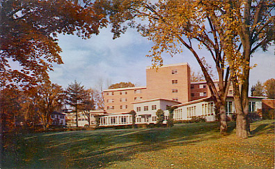 - back "Lakeside Hall Mount Holyoke College South Hadley, Massachusetts" Divided back, stamp box, postally unused, but inscribed "This is what I now call home! Very nice - don't you think so?" The fact that this card still identifies the building as Lakeside Hall dates this card somewhere between 1949 and 1956. #SC3256 A Natural Color Card from Kodachrome. A Mike Roberts Color Production, Berkeley 2, Calif. Color by Cliff Scofield, Cheshire. Distributed by Mount Holyoke College Bookstore.