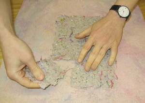 Tear the sheets into smaller pieces. I like to make very thick paper when I'm making paper bowls; it tears more easily and it's more sturdy. And I'll have to make fewer sheets, too. | ||||||||