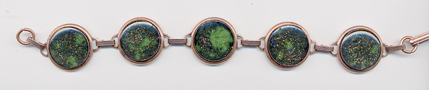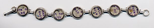![]() I can make bracelets or pendants with handmade paper instead of vintage paper. This bracelet was made with a multicolored green paper, with a little glitter added before sealing. |