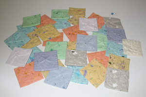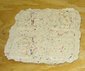 I like to filter off the pulp by pouring the contents of the Rubbermaid bin through a strainer held over the sink. This will make quite a few paper castings. | ||||||||